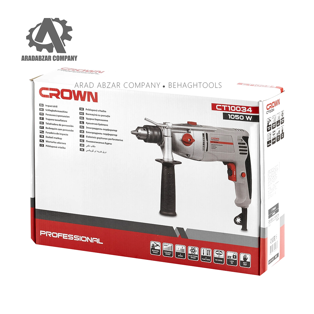 دریل گیربکسی 1050 وات Crown مدل CT10034 قدرت حرفه‌ای برای سوراخ‌کاری و پروژه‌های سنگین