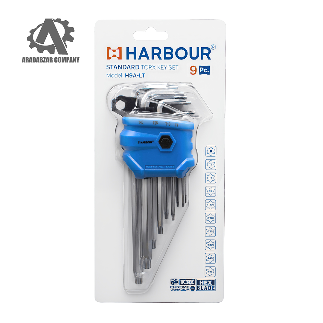 ست آلن ستاره ای ” استاندارد ” هاربر  ،مجموعه ای کامل و حرفه ای از 9 عدد آچار ستاره ای  و با طراحی پیشرفته و کیفیت عالی است .این ست ابزار با ارائه سایزهای متنوع،پاسخ گوی نیازهای مختلف در پروژه های تعمیراتی و فنی است و به دلیل دقت بالا و ساختار مقاوم خود،انتخابی مناسب برای حرفه ای ها و تعمیرکاران است.