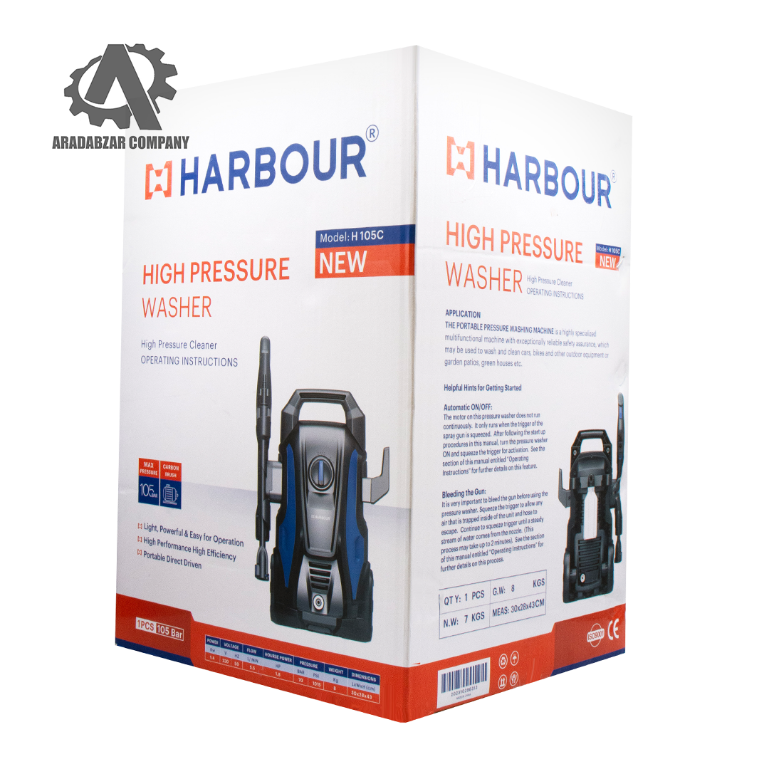 کارواش ۱۰۵ بار ذغالی مدل H105C از محصولات برجسته شرکت هاربر است که با طراحی هوشمندانه و عملکردی قدرتمند، نیازهای شستشوی خانگی و نیمه‌ صنعتی را به‌طور کامل برآورده می‌کند.